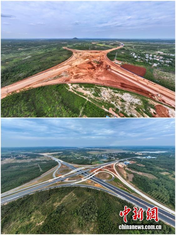 2025年12月18日,海南自由貿易港正式啟動全島封關。近年來,海南自貿港建設在利好政策帶動下不斷刷新“自貿港速度”,一個個重大項目、重點園區(qū)拔地而起,直觀呈現(xiàn)海南自貿港的蓬勃生機。這里正成為中國對外開放的新前沿、互利合作的新熱土和推動經(jīng)濟全球化的新引擎。上資料圖為2021年2月6日正在建設中的G15沈海高速公路??诙雾椖亢P慊ネǎ沦Y料圖為2022年12月28日G15沈海高速公路海口段建成通車。(拼版圖,無人機照片)