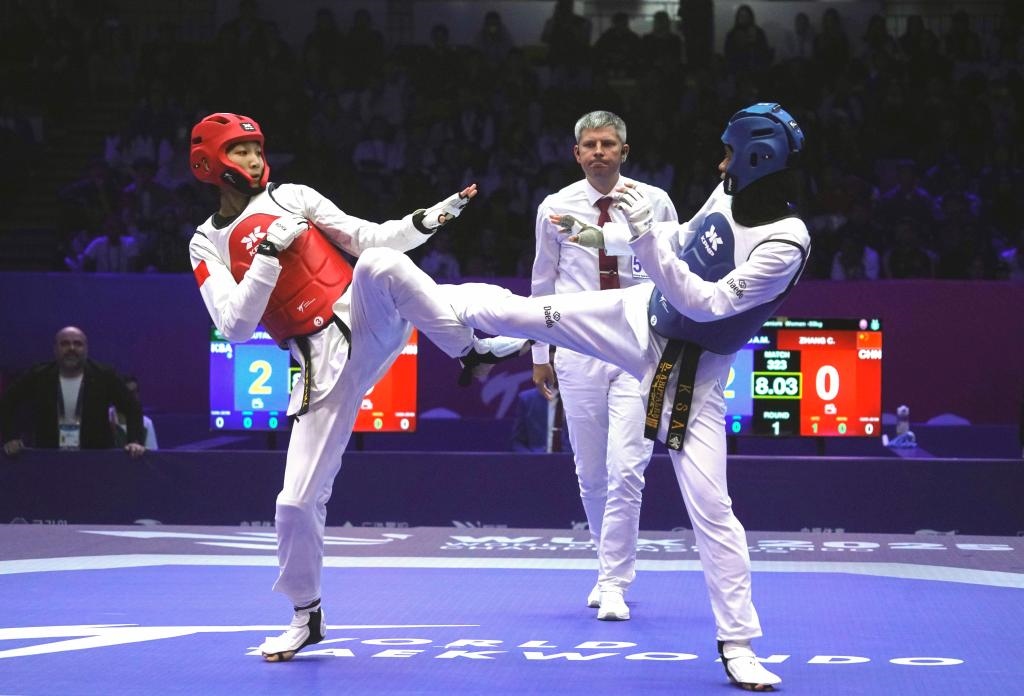 圖為10月30日在江蘇無錫舉行的一場2025年世界跆拳道錦標(biāo)賽比賽。新華社發(fā)(劉臻睿攝)
