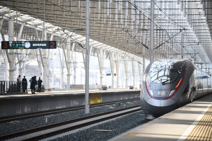 冬日暖陽,灑向延安火車站的站臺。26日10時許,“復(fù)興號”智能動車組列車駛出站臺,向著關(guān)中平原飛馳而去,縈繞在老區(qū)幾代人心中的高鐵夢照進現(xiàn)實。