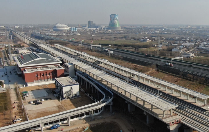 2025年12月26日,從延安開往西安的C9339次列車駛過富平南站(無人機照片)。新華社記者 李一博 攝