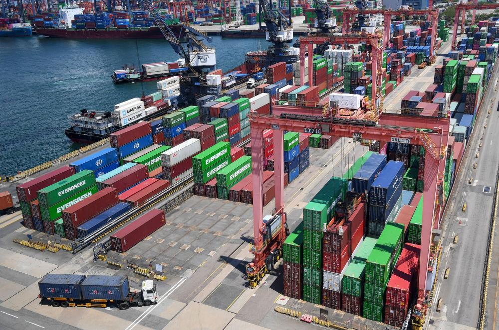 這是5月22日拍攝的香港貨柜碼頭。新華社記者 陳鐸 攝