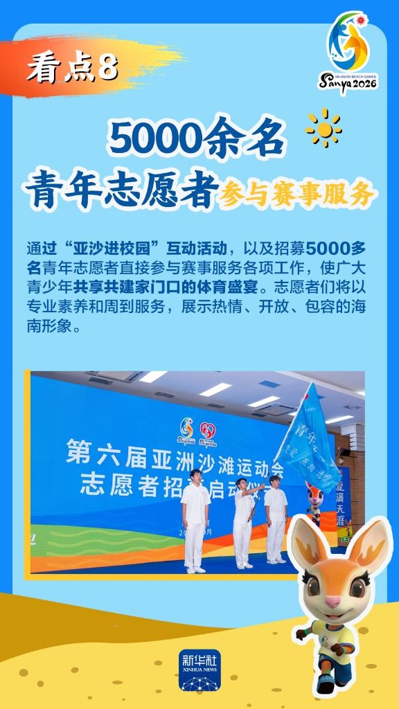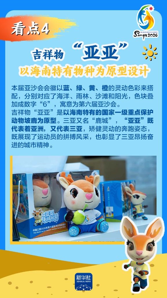 第六屆亞洲沙灘運動會(以下簡稱“亞沙會”)將于2026年4月22日至30日在海南三亞舉行,賽事歷時9天。作為海南自由貿(mào)易港封關(guān)運作后迎來的首個國際大型綜合性體育盛事,亞沙會都有哪些看點?為何值得期待?國新辦12日發(fā)布會做了詳細(xì)介紹,一起來看。