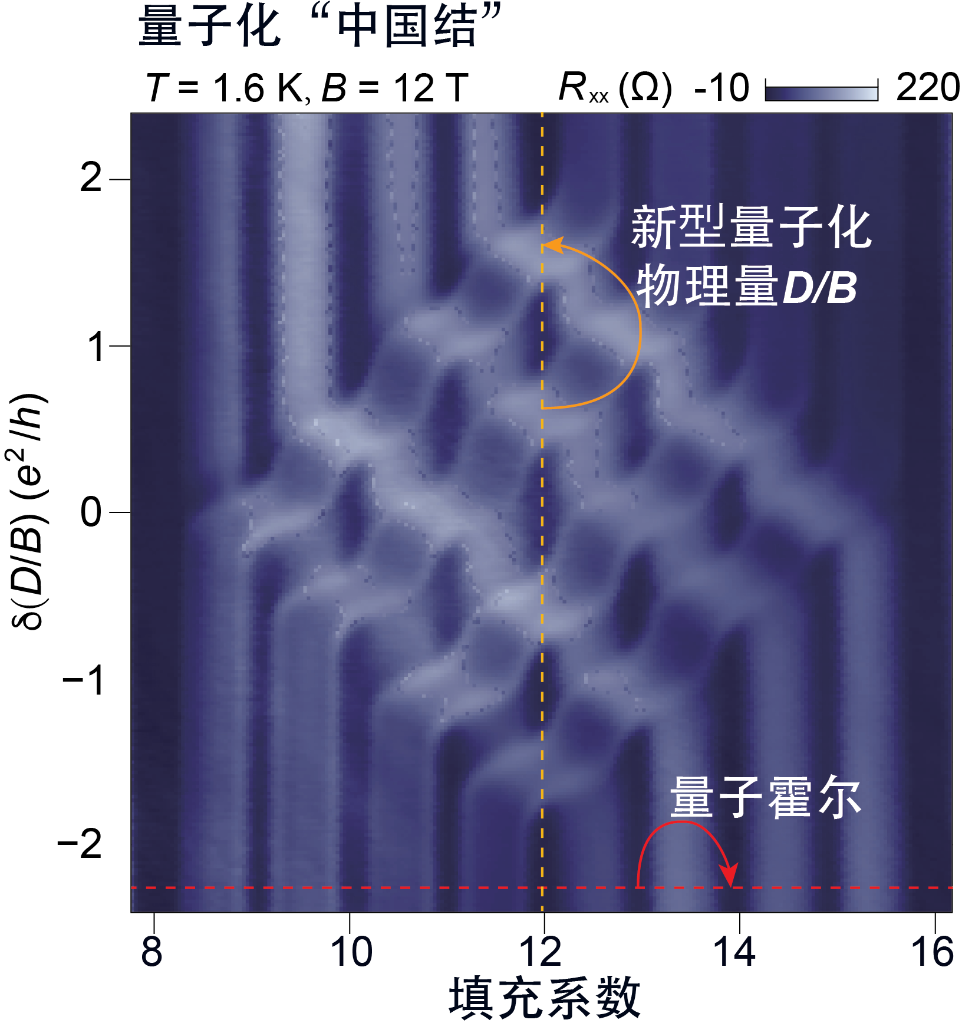 團(tuán)隊(duì)中的武漢大學(xué)科研人員進(jìn)一步揭示了背后的物理機(jī)制:“中國結(jié)”的形成源于電子相之間的競爭與切換。實(shí)驗(yàn)表明,這種量子化特征具有極高的穩(wěn)定性,在3特斯拉至30特斯拉的寬磁場范圍內(nèi)均能保持清晰的結(jié)構(gòu)。