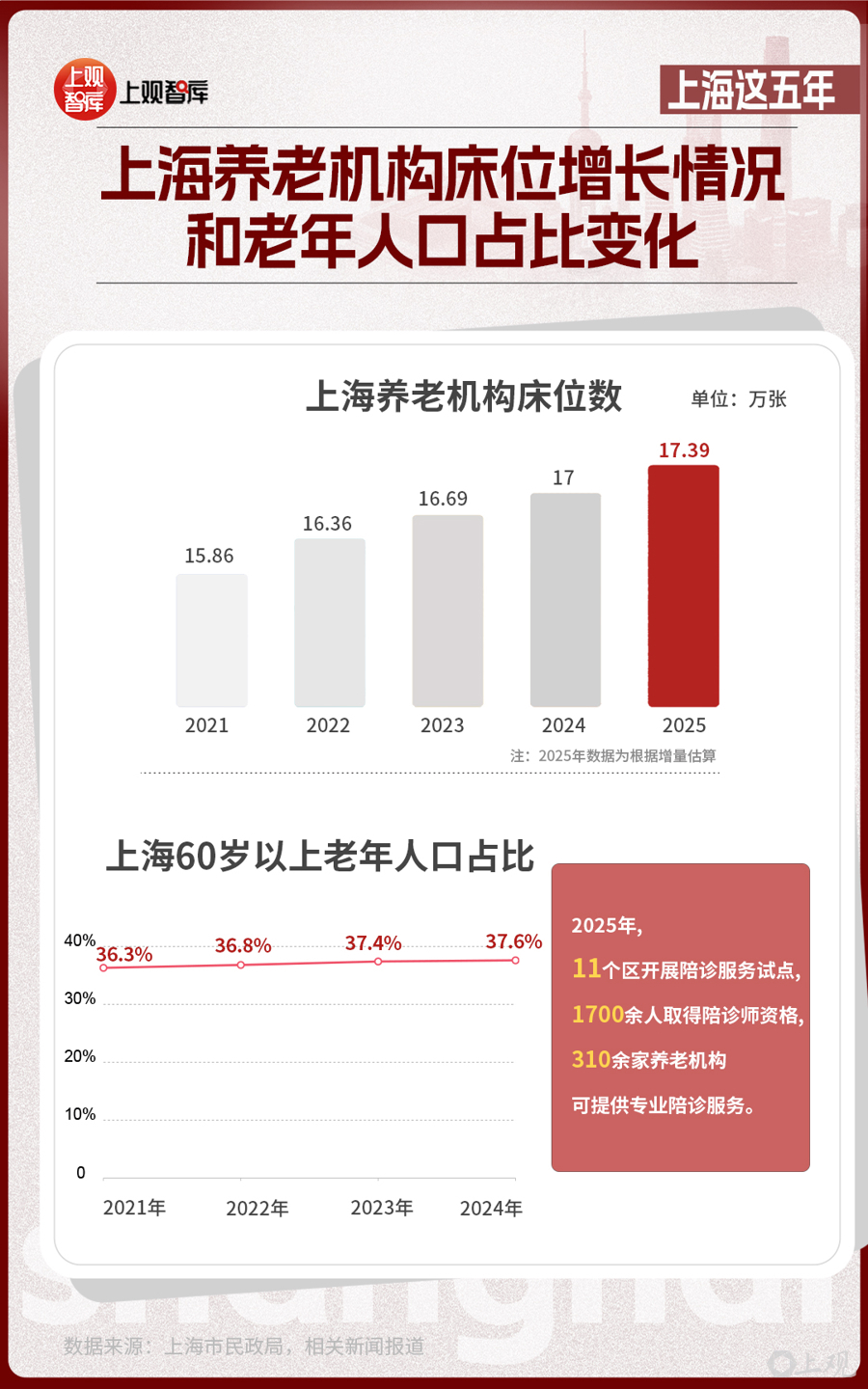 截至2025年3月底,上海市60歲及以上戶籍老年人口達到518.7萬人,占戶籍總人口的36.2%。上海相關健康指標持續(xù)優(yōu)化,人均期望壽命有望超過84歲,保持發(fā)達國家水平。