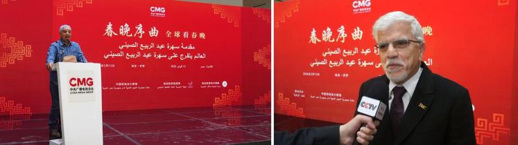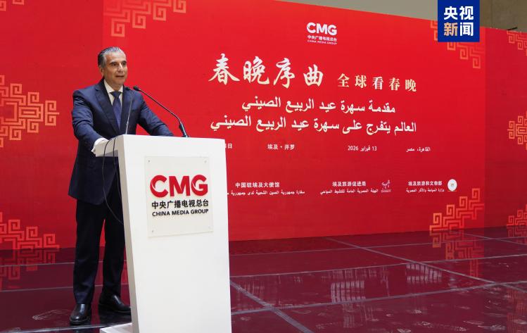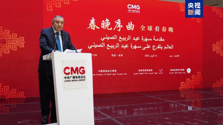 當?shù)貢r間2月13日,“春晚序曲 全球看春晚”埃及專場活動在開羅舉行。本次活動由中國中央廣播電視總臺與中國駐埃及大使館、埃及旅游和文物部、埃及旅游促進局共同主辦。中宣部副部長、中央廣播電視總臺臺長慎海雄作視頻致辭。中國駐埃及大使兼駐阿盟全權(quán)代表廖力強,埃及政府代表、埃及外交部亞洲事務(wù)部助哈姆扎,埃及前總理沙拉夫出席活動并致辭。埃及考古學(xué)家、前文物部長哈瓦斯,埃及旅游促進局主席代拉提芙,埃及外交事務(wù)委員會執(zhí)行主任伊扎特,巴德爾大學(xué)副校長巴斯歐尼,阿盟非洲事務(wù)司司長布斯坦吉,阿盟理事會秘書處主任法赫米等中埃兩國政界、學(xué)術(shù)界、媒體界代表200余名嘉賓參加活動。