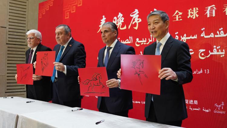 廖力強表示,感謝中央廣播電視總臺將“春晚序曲”帶來埃及,為埃及和阿拉伯朋友感知中國打開一扇窗,為中埃、中阿人民相知相近架起一座橋。自中國春節(jié)在2024年申遺成功后,世界上越來越多的國家和人民與中國人民一道,慶祝春節(jié),共享歡樂,中國年已成為世界年。中埃、中阿友誼源遠流長,中國人民和埃及、阿拉伯人民的心始終緊緊連在一起。今年是丙午馬年,中埃、中阿、中非關(guān)系迎來建交70周年。在中國傳統(tǒng)文化中,馬寓意著進取與希望。我們愿同埃方一道,以一馬當先的沖勁、馬不停蹄的干勁,推動雙邊關(guān)系朝著構(gòu)建面向新時代中埃命運共同體的目標前進,為中阿、中非關(guān)系增添新動力,為維護世界和平穩(wěn)定、促進全球發(fā)展繁榮作出更大貢獻。