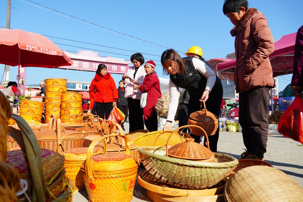 一些南方地區(qū)稱村鎮(zhèn)市集為“圩”。東田鎮(zhèn)“趕圩”的歷史悠久,至今已延續(xù)400多年。一位攤主告訴記者,“農(nóng)歷每月逢四逢九的日子便是東田鎮(zhèn)的趕圩日。年關前的集日人尤其多,大家都在熱熱鬧鬧地囤年貨?!?/p>