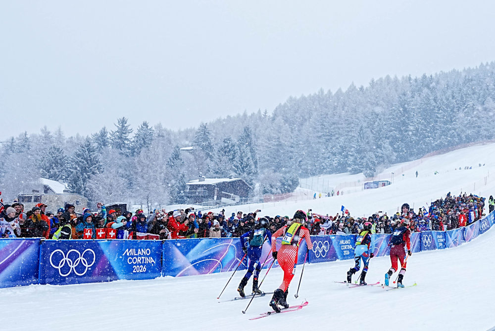 2026年2月19日,運(yùn)動(dòng)員在米蘭-科爾蒂納冬奧會滑雪登山比賽中。新華社記者 顏麟蘊(yùn) 攝