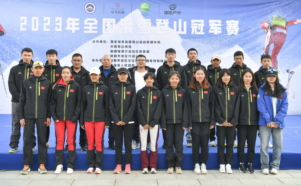 這是在首屆全國滑雪登山冠軍賽期間拍攝的布魯爾(前排左一)、次旦玉珍(前排左五)和國家集訓(xùn)隊(duì)合影(2023年4月7日攝)。新華社記者 胡虎虎 攝
