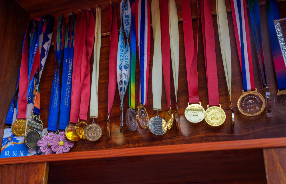 次旦玉珍參賽獲得的獎(jiǎng)牌被家人掛在家中展示(2026年2月7日攝)。新華社記者 丁增尼達(dá) 攝