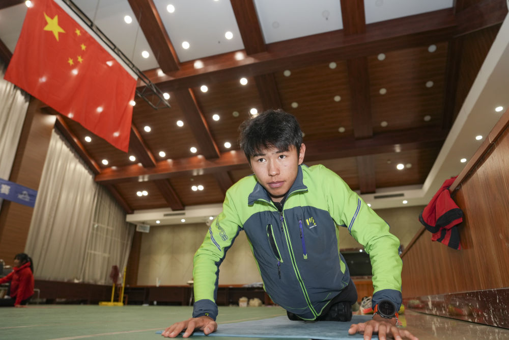 2026年2月19日,次旦玉珍在米蘭-科爾蒂納冬奧會滑雪登山女子個(gè)人短距離比賽前熱身。新華社記者 顏麟蘊(yùn) 攝