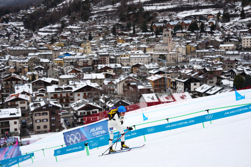 2026年2月21日,布魯爾在米蘭-科爾蒂納冬奧會滑雪登山混合接力比賽中。新華社記者 胡虎虎 攝