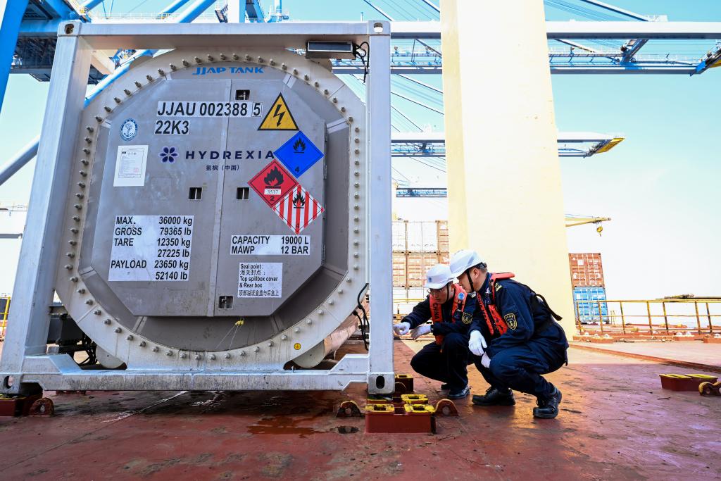 為了保障儲氫設(shè)備順利出運,在交通運輸部海事局的指導下,上海海事局與遼寧海事局針對企業(yè)需求,圍繞設(shè)備特性、運輸條件和安全要求,組織專家開展技術(shù)評估,對設(shè)備結(jié)構(gòu)完整性、安全附件配置、應(yīng)急處置措施及安全運輸條件等進行全鏈條論證和指導。