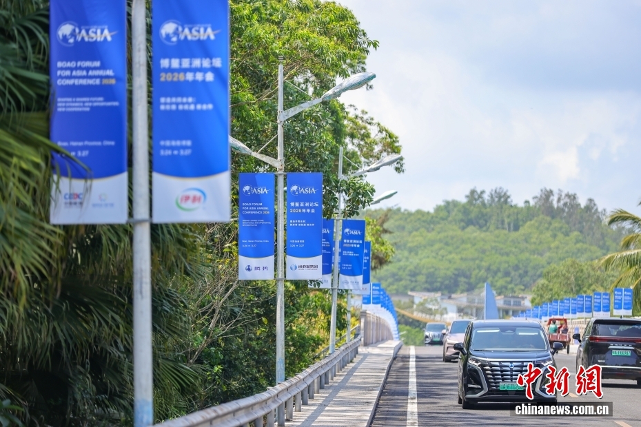 3月17日,博鰲亞洲論壇2026年年會各項籌備工作正有序推進(jìn),海南博鰲街頭的盛會氛圍日漸濃厚。以“塑造共同未來:新形勢、新機(jī)遇、新合作”為主題的博鰲亞洲論壇2026年年會將于3月24日至27日在海南博鰲召開。圖為博鰲培蘭橋道路兩側(cè),博鰲亞洲論壇2026年年會道旗整齊排列。中新社記者 駱云飛 攝