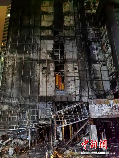 圖為大面積過火后的建筑東側(cè)樓體外墻。 陸祁國(guó) 攝