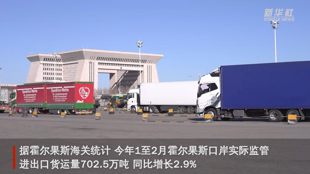 在霍爾果斯口岸,目前每天有上千輛滿載新鮮果蔬、日用百貨的廂式貨車及商品車從這里出境,運(yùn)往哈薩克斯坦、烏茲別克斯坦等共建“一帶一路”國(guó)家。據(jù)霍爾果斯海關(guān)統(tǒng)計(jì),今年1至2月霍爾果斯口岸實(shí)際監(jiān)管進(jìn)出口貨運(yùn)量702.5萬(wàn)噸,同比增長(zhǎng)2.9%。