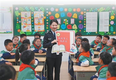 浙江金華市婺城區(qū)人民檢察院檢察官在轄區(qū)小學(xué)開展法治宣傳教育。金思成攝
