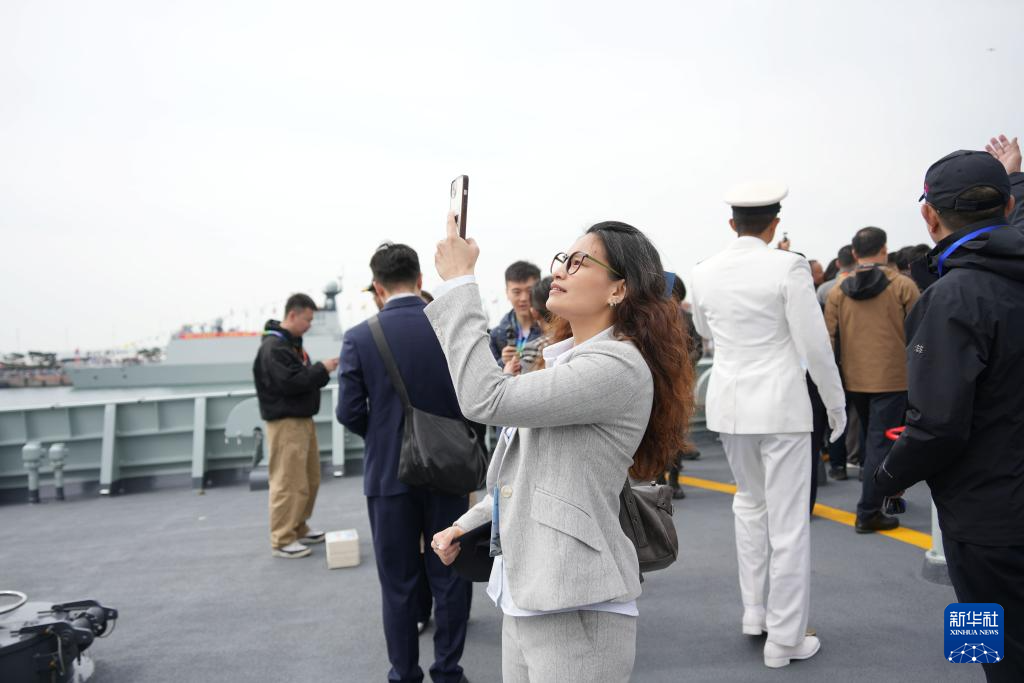 4月23日,臺(tái)灣同胞參觀海軍艦艇。新華社記者 李杰 攝