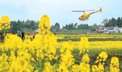 4月以來,四川省崇州市的30萬(wàn)畝油菜花競(jìng)相綻放,從空中俯瞰,將會(huì)帶來不一樣的感受。為此,當(dāng)?shù)亻_通了“低空航線”,游客在半小時(shí)的低空飛行中,不僅可以俯瞰一望無(wú)際的油菜花海,還能欣賞附近錯(cuò)落有致的民居庭院。此外,當(dāng)?shù)剡€推出花海跳傘項(xiàng)目,將極限運(yùn)動(dòng)融入賞花,帶給游客別樣的體驗(yàn)。