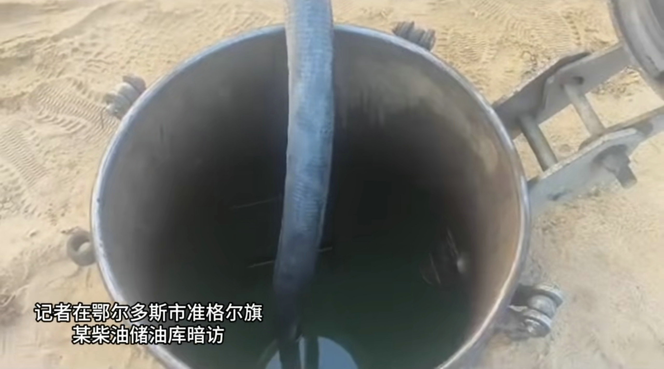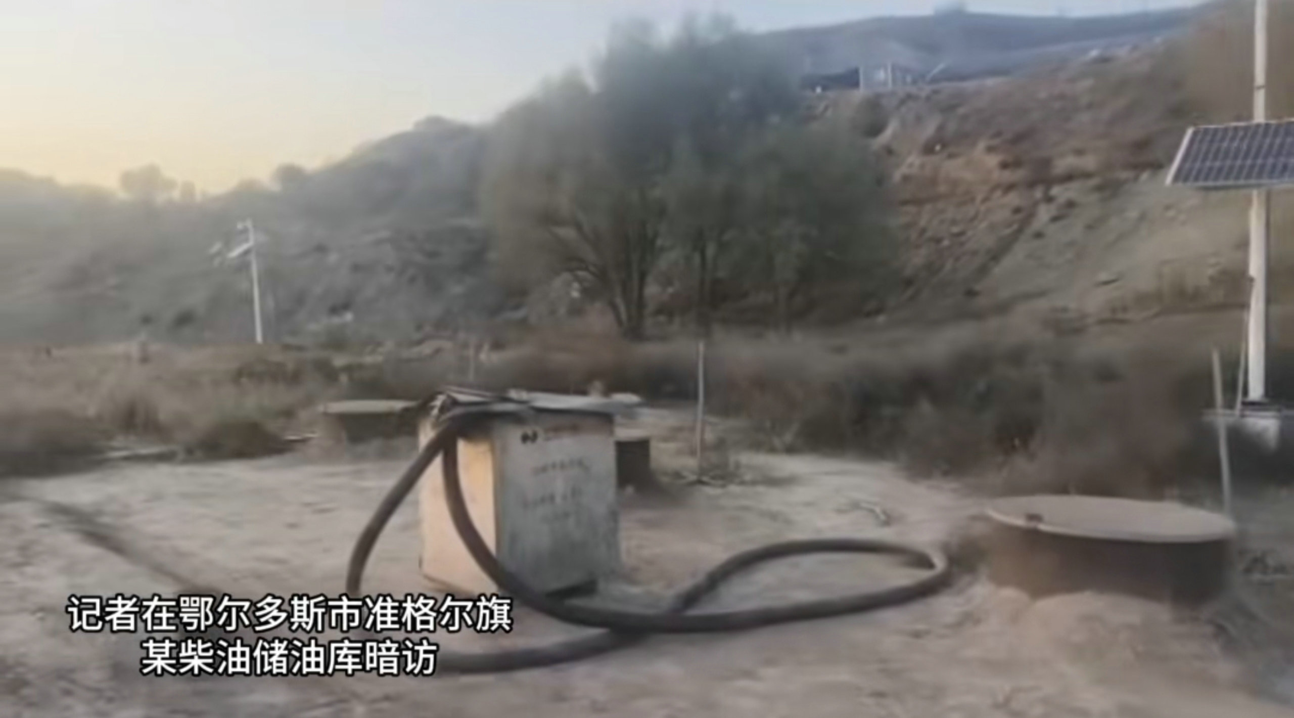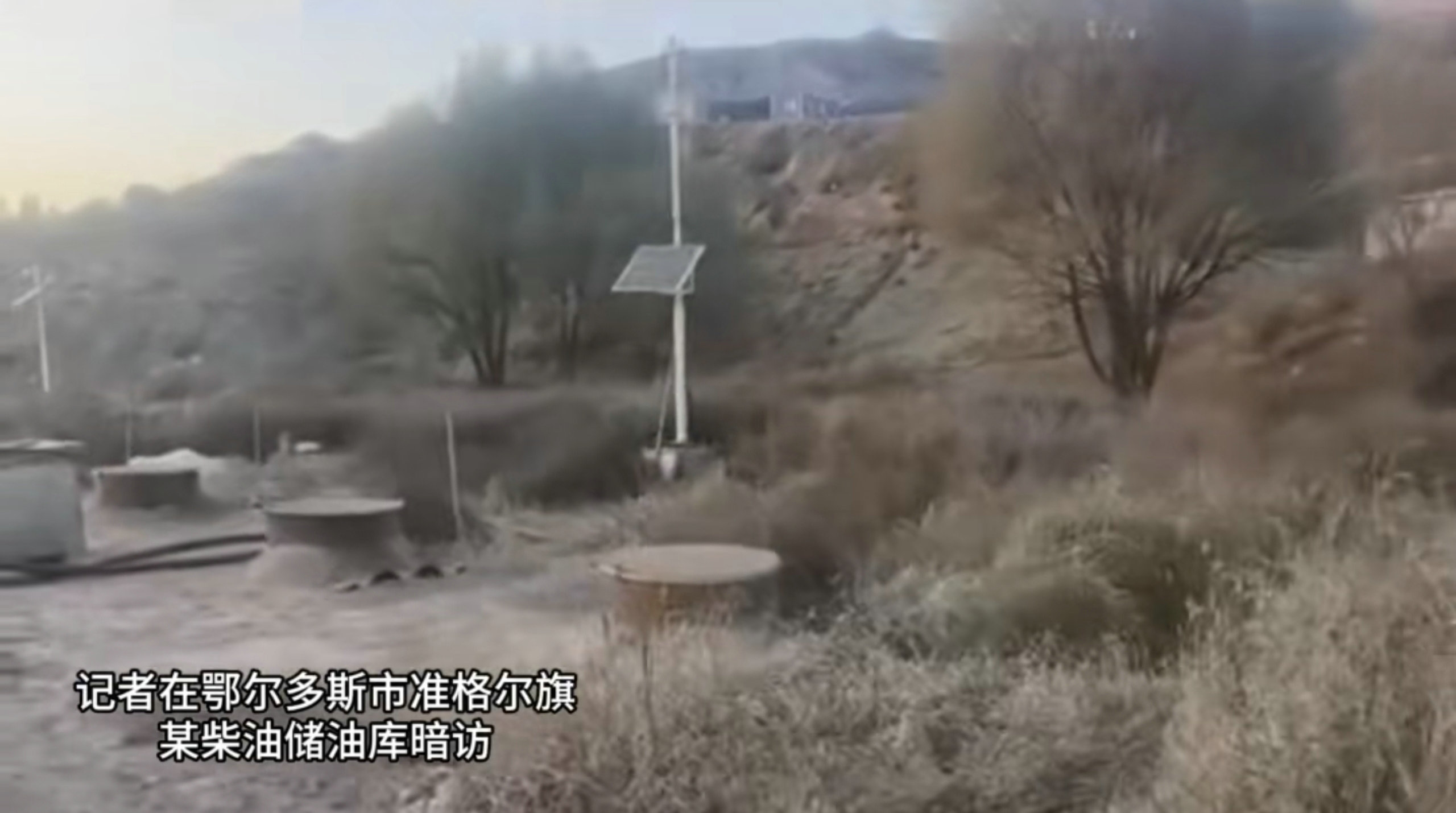 10月28日,內(nèi)蒙古日報社張弓長新聞工作室記者在鄂爾多斯市準格爾旗一個緊鄰礦區(qū)的山溝里暗訪時發(fā)現(xiàn),有一處規(guī)模較大的地埋罐式柴油儲油庫,存在重大安全隱患。
