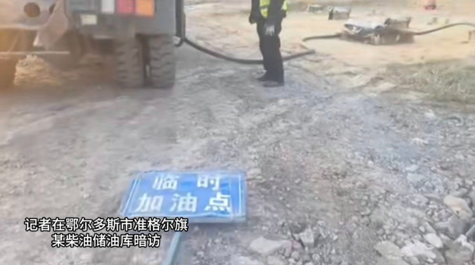 然而,記者在現(xiàn)場暗訪時注意到,正在抽油的那輛無牌運油車上,清晰標注著“準聯(lián)煤礦2號加油車”字樣,在現(xiàn)場作業(yè)的男子也承認這里是準聯(lián)煤礦的儲油庫,這顯然與賀主任的說法完全相悖。