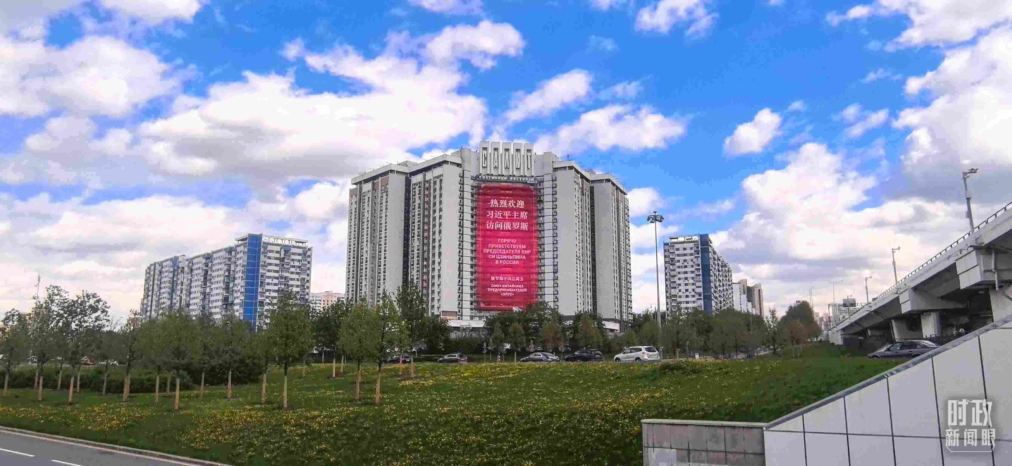 △莫斯科街頭醒目的歡迎標(biāo)語。(總臺(tái)央視記者范凱拍攝)