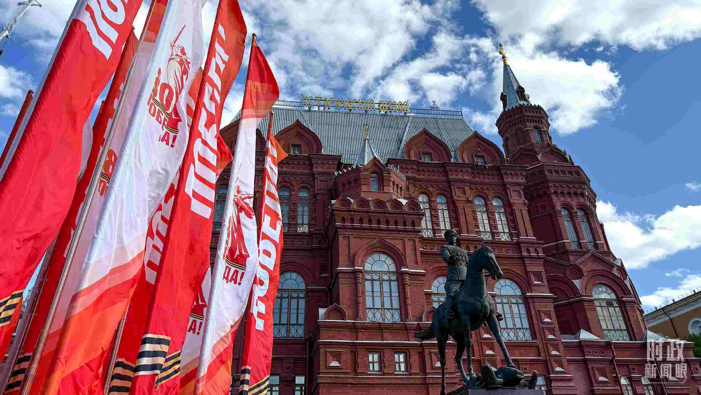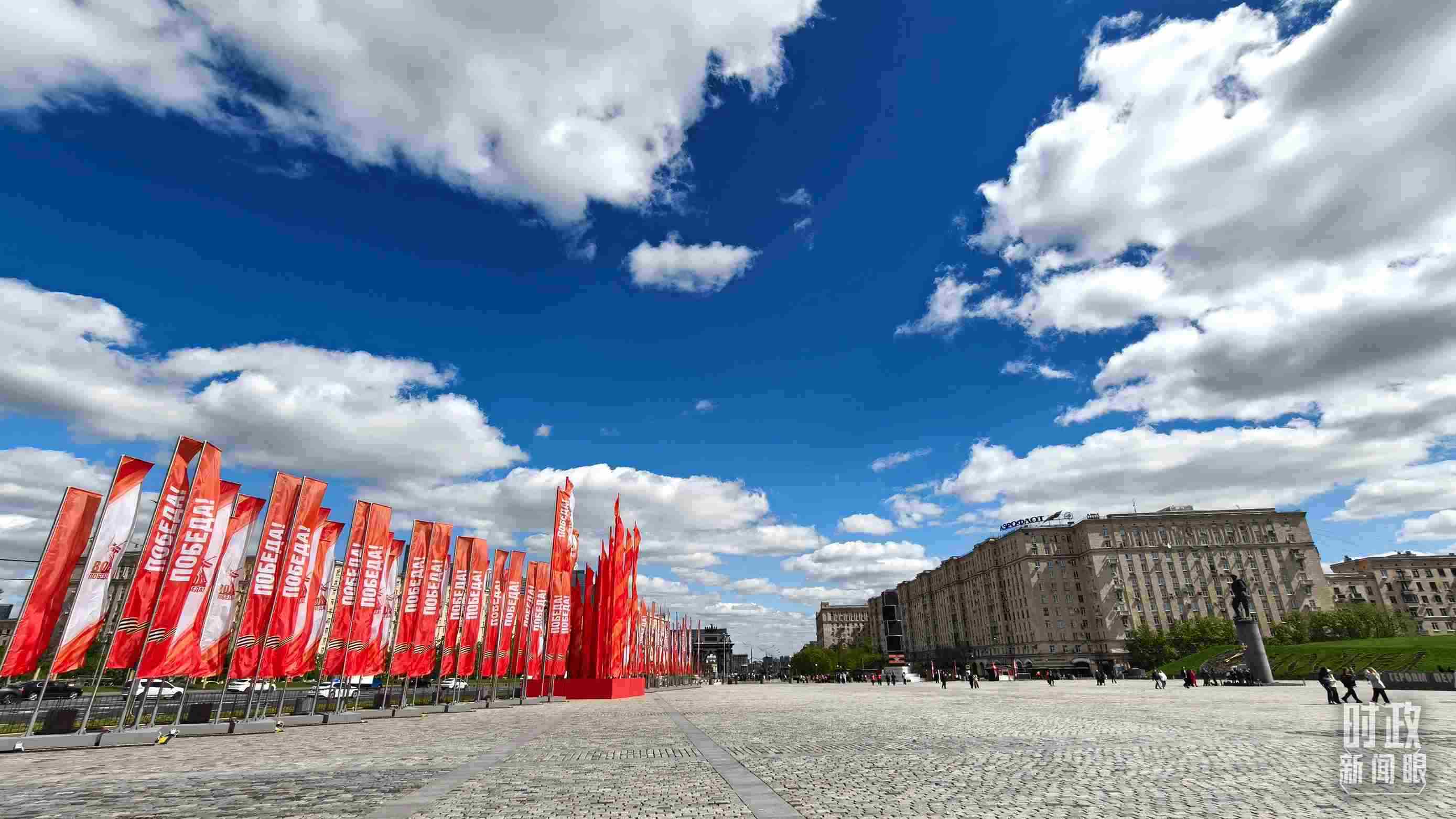 △莫斯科街頭的勝利日旗幟。(總臺(tái)央視記者楊波拍攝)
