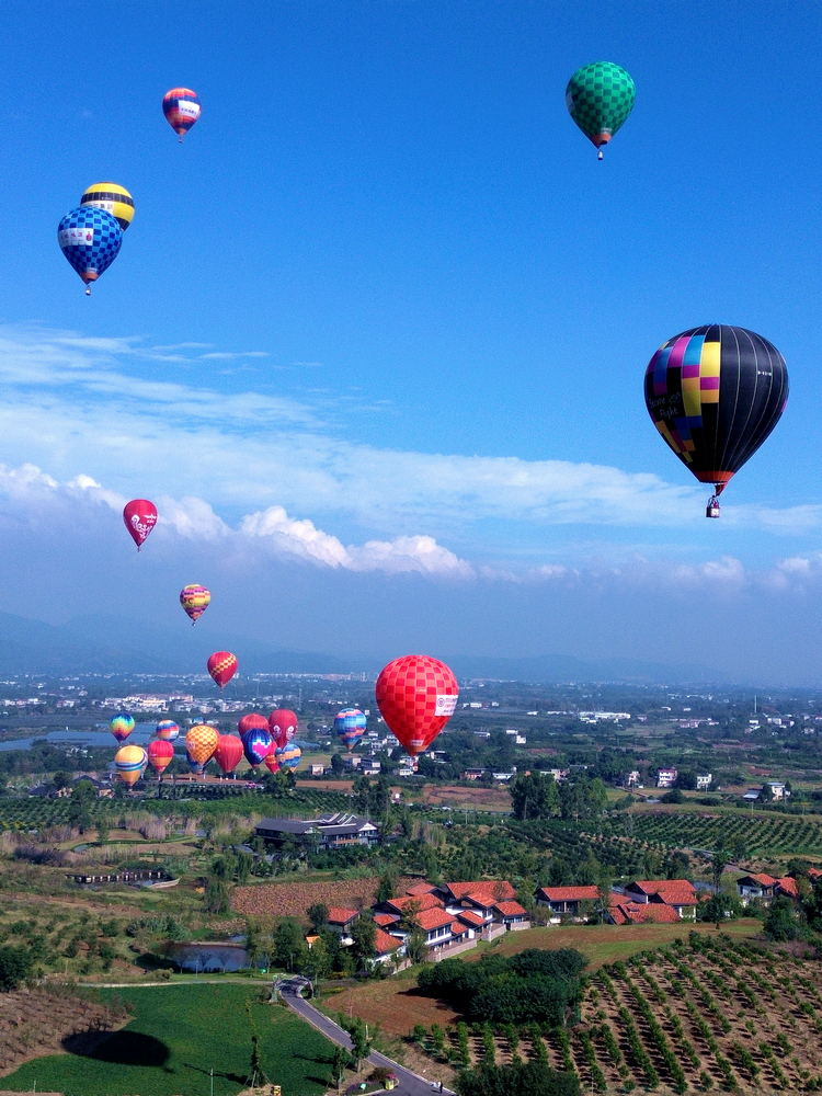 隨著開幕儀式的推進(jìn),30支熱氣球依次完成點(diǎn)火、充氣,在歡呼聲中緩緩升空。紅黃藍(lán)綠的熱氣球與郁郁蔥蔥的柑橘園、錯落有致的川西民居相映成趣,構(gòu)成一幅絕美畫卷。據(jù)了解,此次全國熱氣球精英賽(四川金堂站)作為活動核心賽事,將在10月15日-19日期間開展游蕩華爾茲、定點(diǎn)投靶、肘形飛行等10余項專業(yè)競技項目,最讓人期待的是本次賽事將熱氣球飛躍龍泉山作為了長距離飛行的競賽科目,這將是熱氣球首次飛越龍泉山。屆時,參賽選手在比賽的同時還可以在空中觀賞龍泉山脈、千里沱江、絕美古剎等景觀。