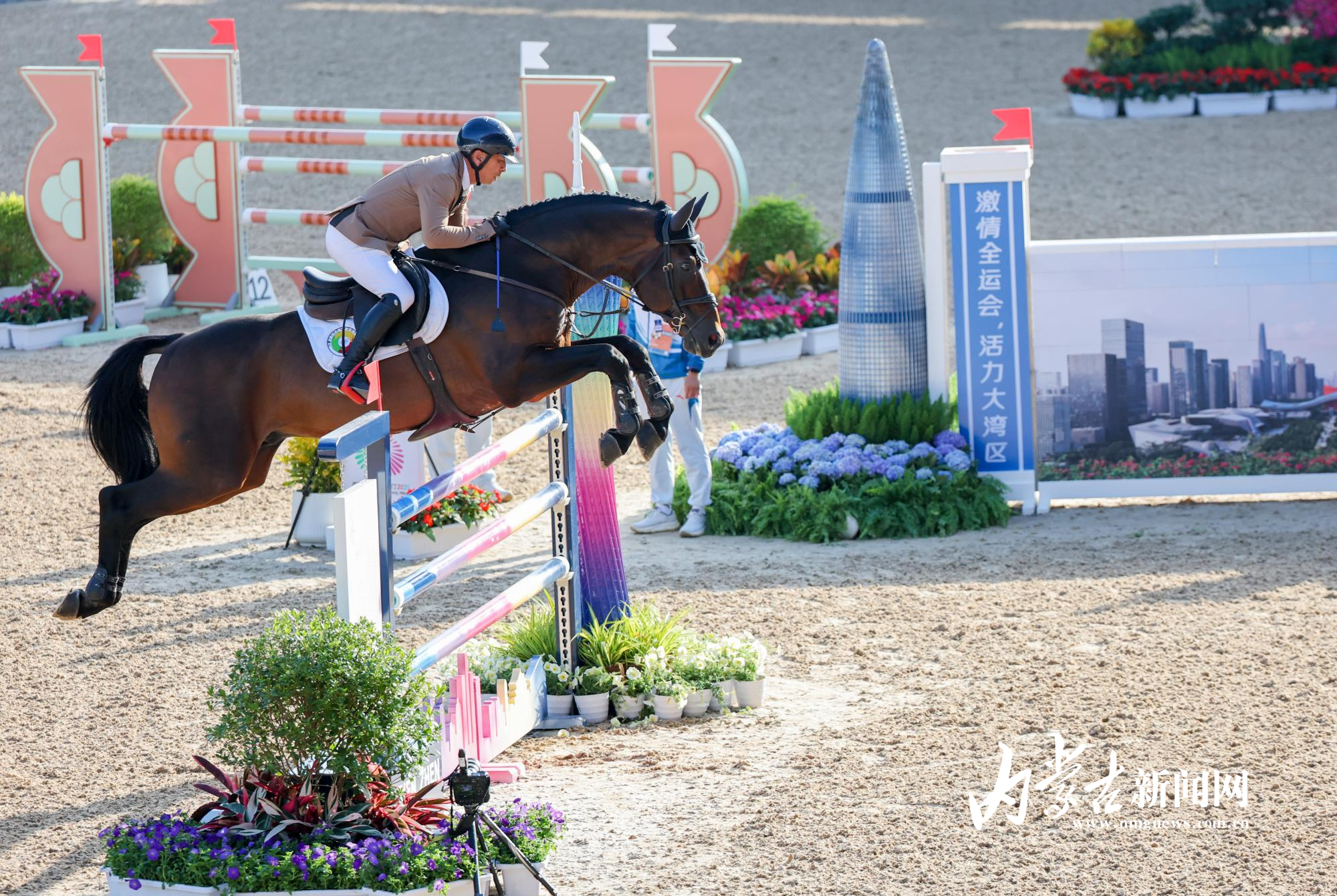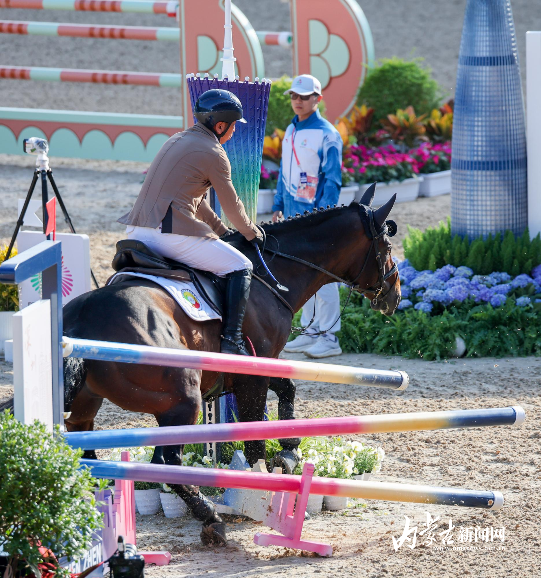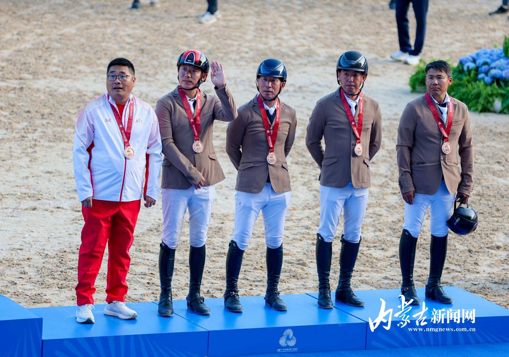 11月17日,第十五屆全國運(yùn)動會馬術(shù)項(xiàng)目場地障礙團(tuán)體賽在深圳市光明國際馬術(shù)中心進(jìn)行,由達(dá)日瑪、劉同晏、張睿、韓豐組成的內(nèi)蒙古隊(duì)?wèi){借兩輪穩(wěn)定發(fā)揮,以總罰分31分的成績斬獲銅牌。