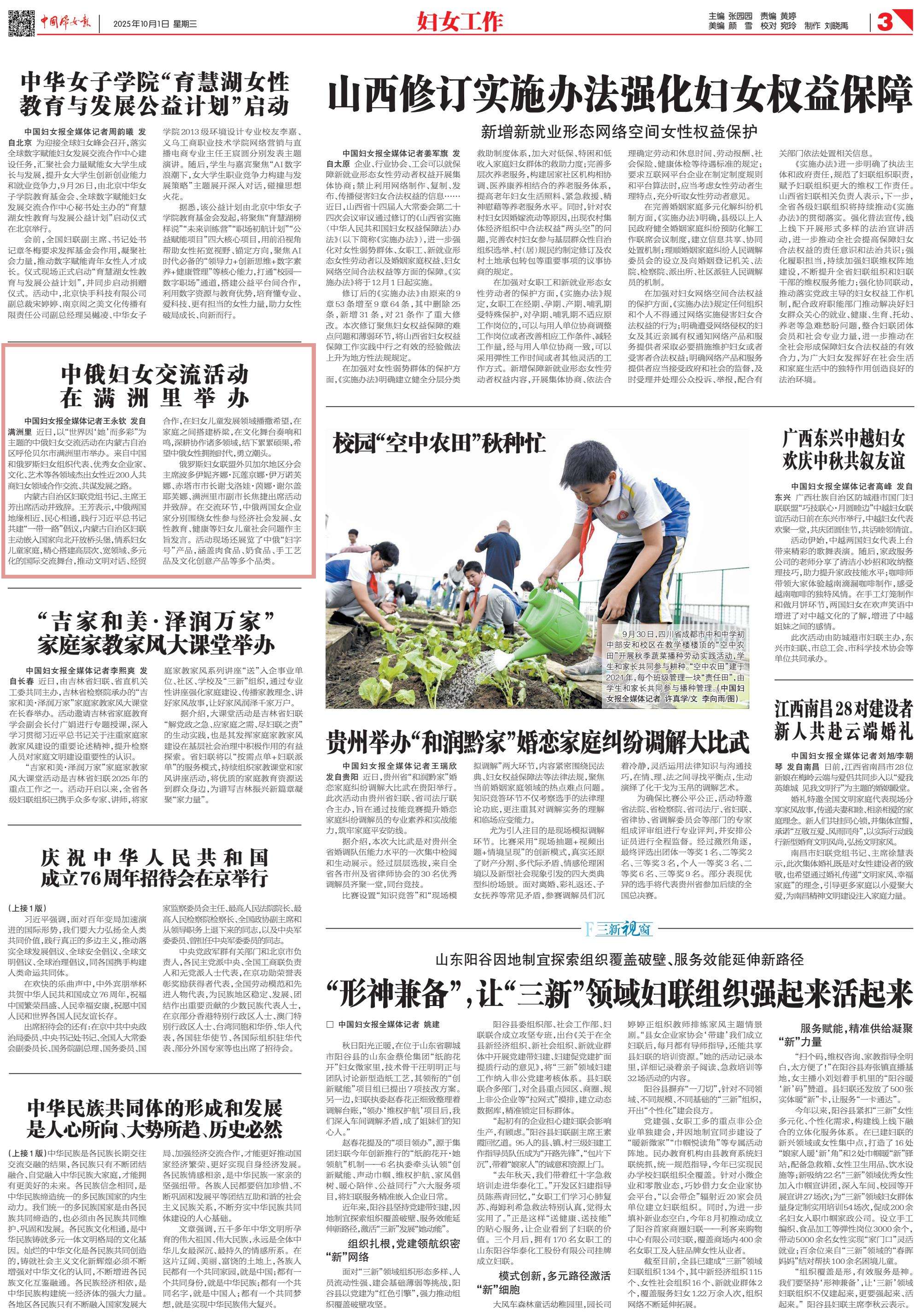 2025年10月1日《中國婦女報》第3版