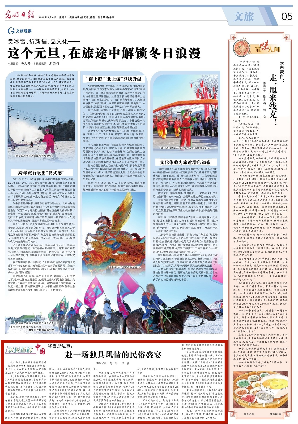 2026年1月4日,《光明日?qǐng)?bào)》第5版刊發(fā)題為《冰雪那達(dá)慕:赴一場(chǎng)獨(dú)具風(fēng)情的民俗盛宴》的文章,報(bào)道了第二十一屆內(nèi)蒙古自治區(qū)冰雪那達(dá)慕,在零下25℃的嚴(yán)寒中燃情舉辦,上萬名游客與各族群眾一同沉醉在這場(chǎng)傳統(tǒng)與現(xiàn)代相融的冰雪盛宴里。
