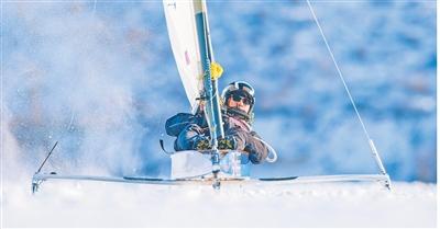 冰帆又稱“冰上快艇”,是近幾年興起的戶外運(yùn)動項(xiàng)目。與尋常帆船比賽不同,冰帆賽的場地并非海面,而是一片光滑如鏡的冰面。冰帆的獨(dú)特之處在于船體下方配置了冰刀,選手們操縱帆具,僅憑自然風(fēng)力,就能在冰面上揚(yáng)帆。相較普通帆船,冰帆的操作更為簡易,冰刀相當(dāng)于輪子,風(fēng)帆相當(dāng)于發(fā)動機(jī)。比賽場地寬200米以上、長700米以上,風(fēng)力平穩(wěn)保持在2級以上,賽時(shí)選手躺在帆船中以減少風(fēng)阻。