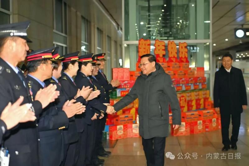 春節(jié)將至,首府的街頭張燈結(jié)彩,處處洋溢著喜慶祥和的節(jié)日氛圍。王偉中一行首先來到賽罕區(qū)一中隊(duì)交警執(zhí)勤崗點(diǎn),親切慰問正在執(zhí)勤的民警,送上新春美好祝福,感謝大家的默默堅(jiān)守和無私付出。王偉中叮囑大家注意防寒保暖,以良好狀態(tài)守護(hù)城市平安暢通。在萬正廣場環(huán)衛(wèi)站,王偉中一行看望慰問辛勤工作的環(huán)衛(wèi)工人。王偉中說,你們是城市的“美容師”,每天起早貪黑、風(fēng)雨無阻,用辛勤勞動換來了城市的清潔美麗,大家辛苦了。有關(guān)部門要多關(guān)心他們的工作和生活,細(xì)化關(guān)愛舉措,健全保障機(jī)制,在全社會營造尊重環(huán)衛(wèi)工人、珍愛生活環(huán)境的良好氛圍。隨后,王偉中一行來到呼和浩特火車東站,仔細(xì)詢問春運(yùn)期間人流車流、安全保障等情況。王偉中強(qiáng)調(diào)要精準(zhǔn)把握春節(jié)群眾出行規(guī)律,加強(qiáng)運(yùn)力調(diào)配、客流疏導(dǎo)和秩序維護(hù),深入排查整治安全隱患,切實(shí)提升服務(wù)質(zhì)量,讓群眾出行更安全、更舒心。
