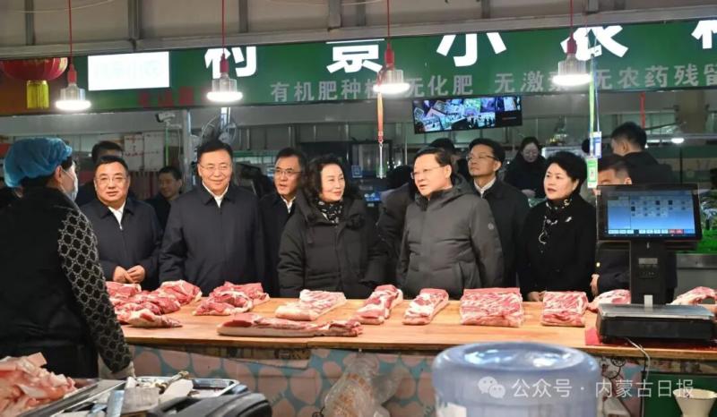 2月13日,自治區(qū)黨委書記、人大常委會主任王偉中走進(jìn)賽罕區(qū)寶全農(nóng)貿(mào)市場,了解商品產(chǎn)地、存儲、價格、運(yùn)銷等情況。草原云·內(nèi)蒙古新聞網(wǎng)記者 馬建兵 攝