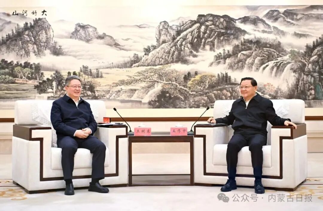 4月8日,自治區(qū)黨委書記、人大常委會主任王偉中,自治區(qū)黨委副書記、自治區(qū)人民政府主席包鋼在呼和浩特會見中國中煤能源集團有限公司董事長王樹東、總經(jīng)理高士崗。