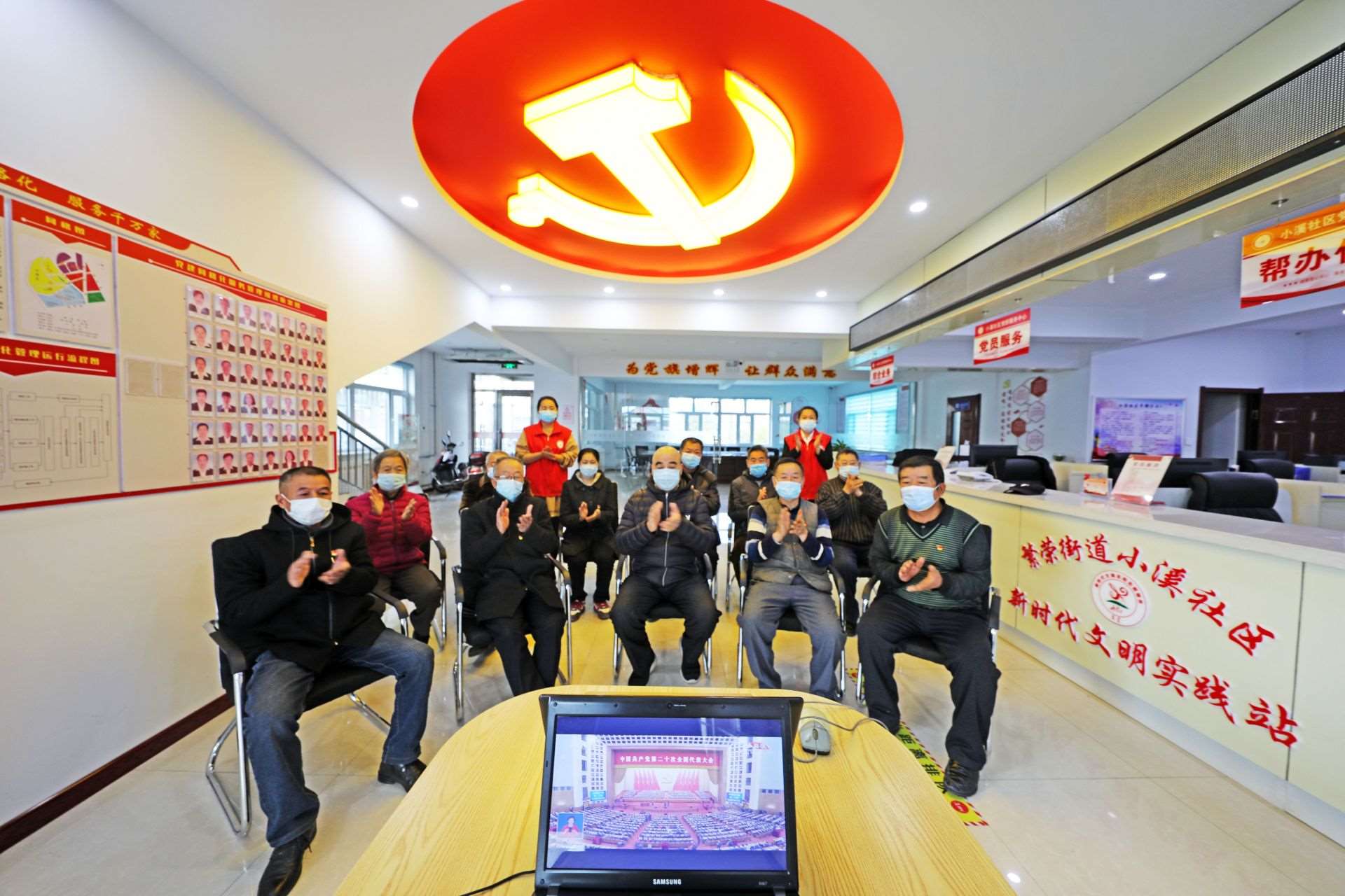 烏海市烏達(dá)區(qū)巴音賽街道辦事處組織轄區(qū)黨員群眾收看黨的二十大開幕會。本報記者郝飚?dāng)z