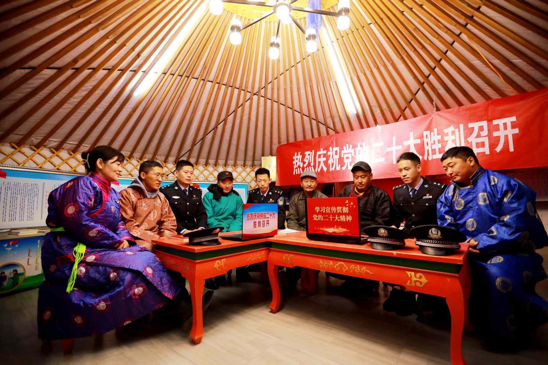 蘇尼特左旗邊境管理大隊民警與群眾一同收看黨的二十大開幕會。任利勇攝