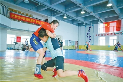 榜樣是看得見的力量。疫情防控要求下,隊里的姑娘們已經(jīng)進(jìn)行了大半年的全封閉訓(xùn)練,對身心都是巨大的挑戰(zhàn),但她們都想向冠軍看齊,再大的挑戰(zhàn)也要迎上去?!叭ツ耆\(yùn)會我因一分之差沒能進(jìn)入決賽,特別遺憾??粗犛涯媒鹋疲覀兌紴樗吲d,也意識到自己要加倍努力!”全運(yùn)會的失利成了張帥刻苦訓(xùn)練的動力,練習(xí)摔跤10年,拿下一塊金牌是她今年的目標(biāo)。雖然摔跤對抗強(qiáng)度大,拉傷扭傷是家常便飯,但張帥卻被這項運(yùn)動深深吸引,她說:“我愛摔跤的刺激,不到最后一刻誰都不能預(yù)測勝負(fù),拼到最后的熱血才是競技體育”。